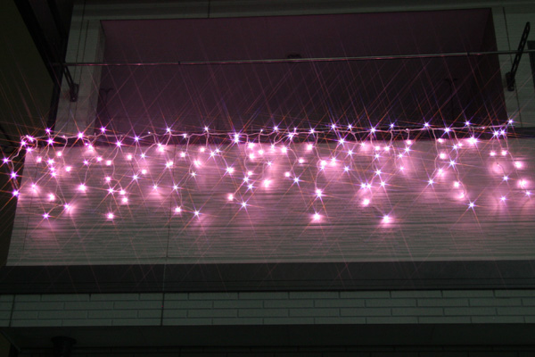 長さ約3.5mの中に24cm・48cm・72cmの長さの異なった垂れ下がりでつらら状の光を演出